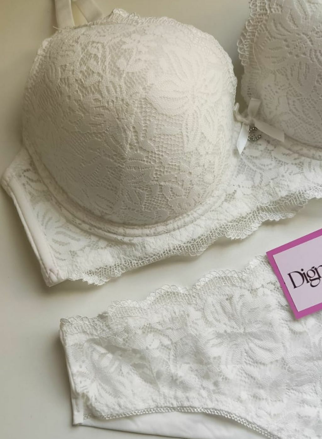 Feito em renda delicada e inspiradora, esse conjunto traduz o charme feminino com um toque clássico e romântico. O sutiã oferece sustentação com suavidade, enquanto a calcinha fio duplo proporciona um caimento confortável e sensual, sem marcar.